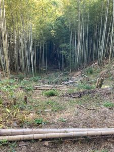 次回から、今まで引き上げれなかった谷底に放置されている大量の朽ちた竹やウインチの道の側面に林立している竹を順次伐採することにより、美しい竹林を蘇らせます。