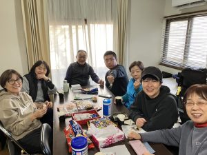 ​体験農園利用者である患者会の皆さんと一緒に、お菓子を広げて休憩タイム☕️🍭