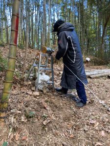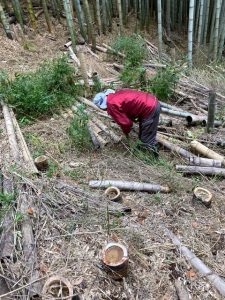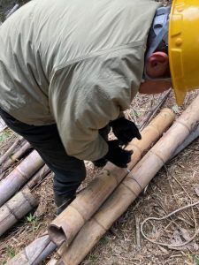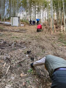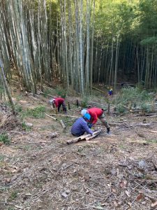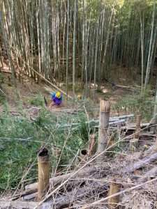 若手組?の鈴江、須田さん、山と川の田中さんは斜面の竹を伐採しました。