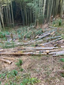 次回から斜面の竹の伐採と奥に存置された大量の竹を順次引き上げ、光の入る美しい竹林に再生します。